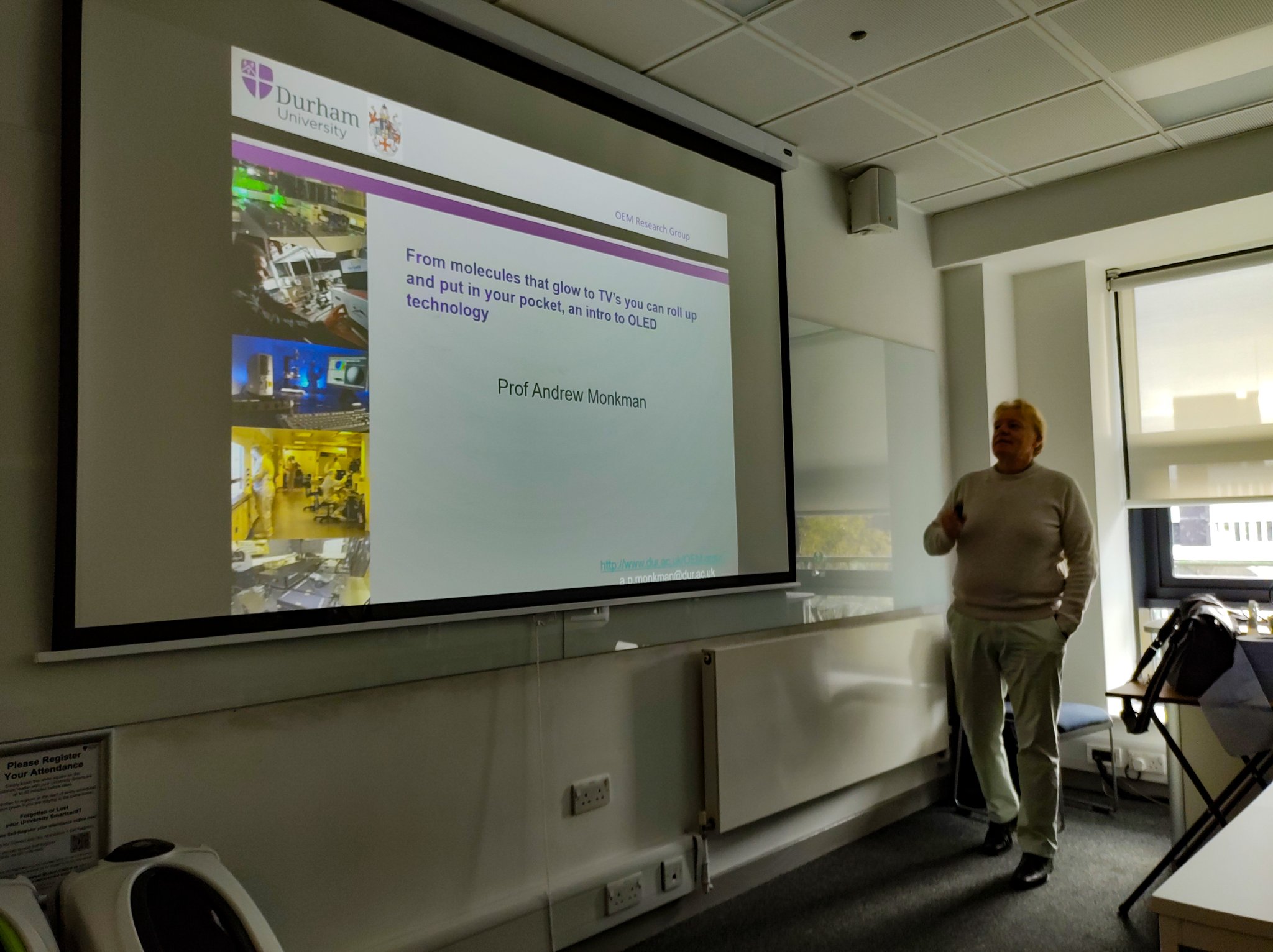 Publish date: 7 November 2023It was a great pleasure to host Prof. Andy Monkman from Durham University as part of our very first Enrichment Week in the Department of Mathematics, Physics and Electrical Engineering at Northumbria University. Andy gave a fantastic talk on how organic light-emitting materials have revolutionised display technology and how they are continuing to have impact in the industry. Inspiring our 2nd year students to think about where their degree can take them.
