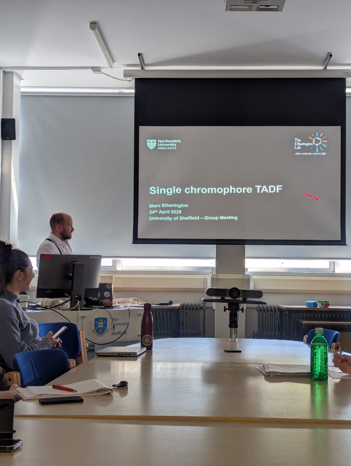 Publish date: 24 April 2026Marc visited the groups of Jenny Clark and Paloma dos Santos to discuss a potential new collaboration. It was a brilliantly sunny day and after a presentation and then discussion in the morning Marc was given a tour of the joint facilities that the two groups share. They went to Rudy’s pizzeria for lunch and then Marc admired the architure of the Mappin Building while catching up on some emails. Keep an eye out for the results of this new collaboration!
